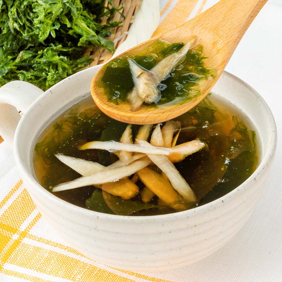 | 原材料 | デキストリン(国内製造)、醤油風調味料(そら豆、食塩)、かつおだし、こんぶだし、酵母エキス、食塩、具(ごぼう、青さのり、乾燥わかめ) |