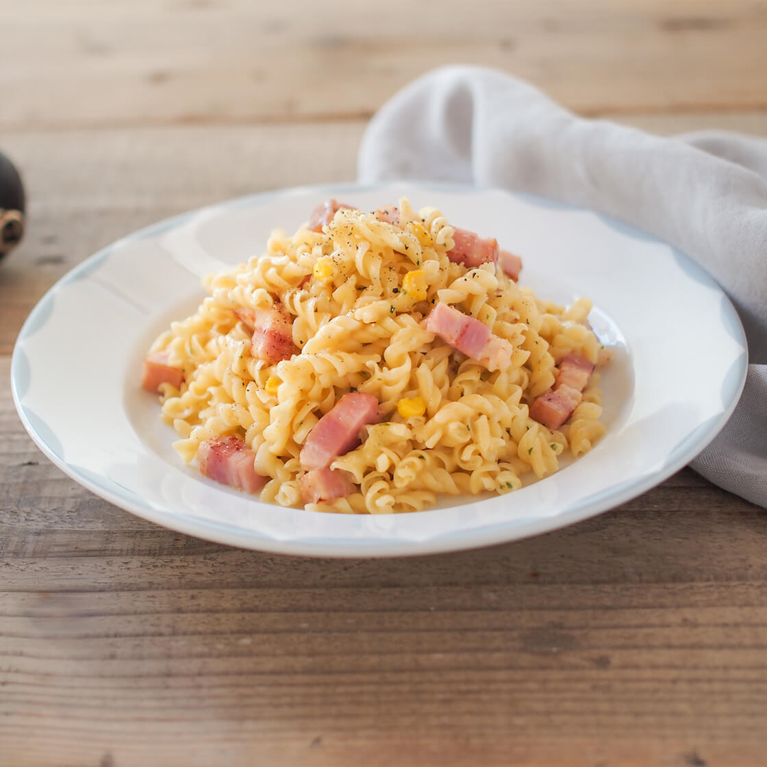 その場deパスタ(コーンクリーム)を使ったアレンジレシピ 「カルボナーラ」
